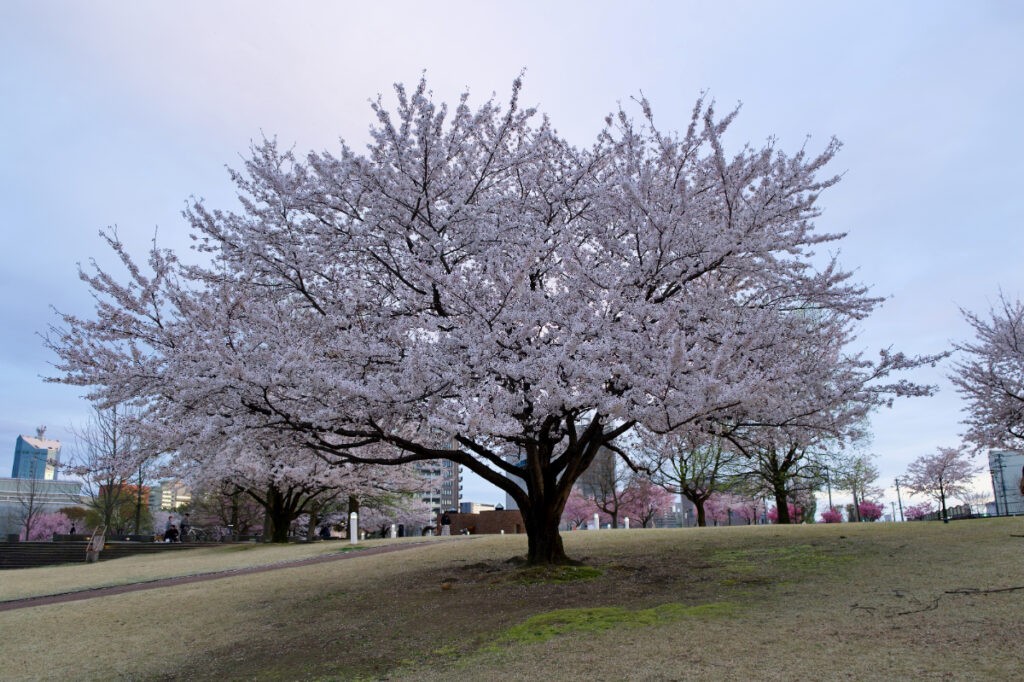 淡く、やわらかく、空の色を受け止めるように咲いている。