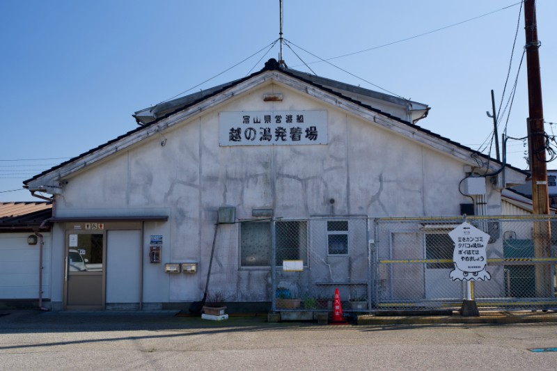 越ノ潟発着場の古びた味のある建物と越ノ潟駅を出発するモダンな車両、その対比がとても面白いなと思いました。