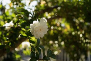 風が揺らすたび、光と影が白の輪郭をなぞり、花は一瞬ごとに違う表情を見せる。