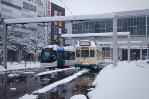 もし冬の富山に来ることがあれば、少し立ち止まって、市電を見送ってみてください。